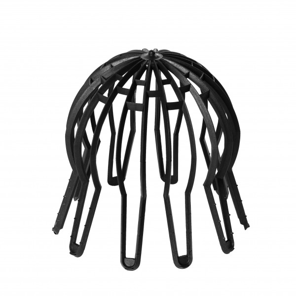 Robustes schwarzes Kunststoff-Boldrahtgitter. Verhindert, dass Blätter und Abfall in die Dachentwässerung gelangen. Passt in alle ø 75-125 mm Dachentwässerungen.
