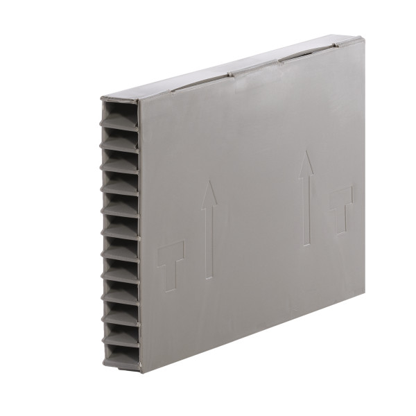 Dieses Stoßfugen-Gitter für Feuchtigkeitsabfluss aus einer Mauerwerkswand ist in 3 Höhen erhältlich: 5, 6 und 9 cm hoch und in 3 Farben.