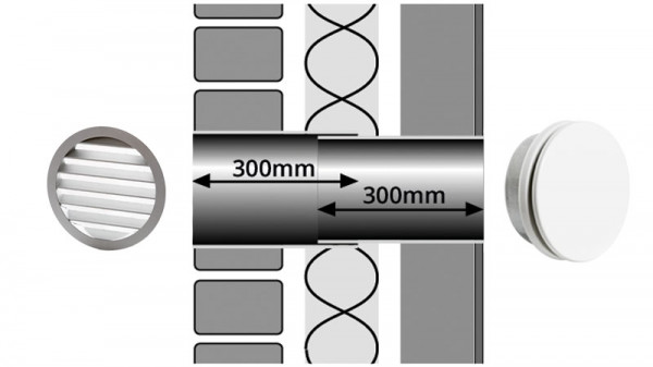 Kleines Wanddurchführungset mit Außenrost, teleskopischem Wandrohr und abschließbarem Innenrost. Realisieren Sie eine gute Belüftung mit diesem kompletten Set.