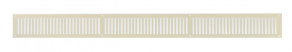 Flache Ausführung. Schöne Aluminium-Schlitzgitter für den Aufbau in verschiedenen Situationen. Auswahl aus vier Varianten; unterschiedliche Länge, Breite und Schlitzmuster.
